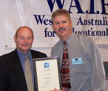 | Professor Graham Dellar receiving an honorary Fellow award, presented by WAIER President Dr Philip Paioff | ![]() | |